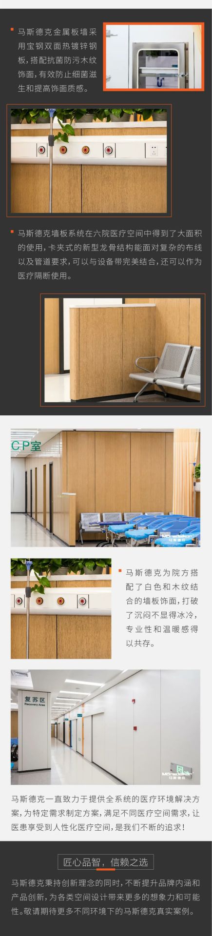 产品种类已覆盖医用钢质门、医用推拉门、室内门、防火门、钢质墙板、钢质空间隔断、金属吊顶等。从接待处到ICU,从化验室到手术室,从病房到行政办公,我们为医院空间环境设计研发多年的产品覆盖各类医院的特定需求..
